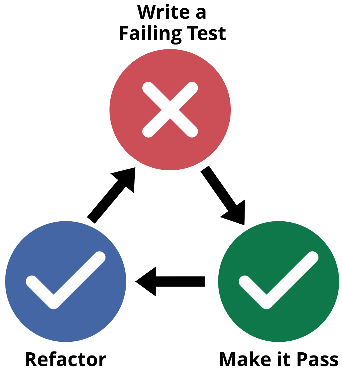 TDD 顾名思义,就是用测试驱动开发,先写测试程序,然后编码实现其功能。下图非常形象地展示了 TDD 的过程。